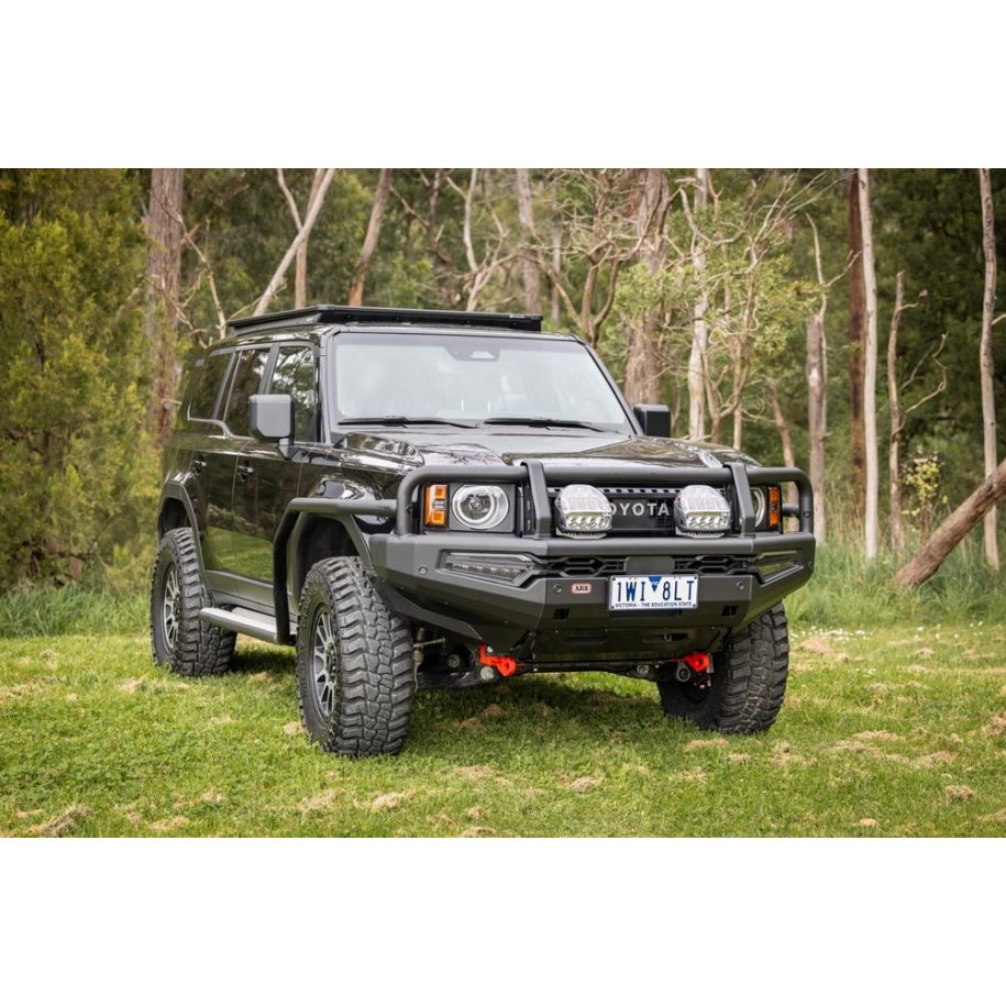 ARB SUMMIT BAR MKII Design and DevelopmentDevelopment began with a number of primary areas of the existing Summit Bar platform:• Buffers• Fog light housing• Fitting timeSummit MKII has eliminated front buffers and now has robot welds on the front face of the bar to highlight ARB'sexcellence in sheet metal fabrication. Fog light design has been significantly updated to include a plug and playindicator / clearance light / Daytime Running Light and fog light within one complete unit for an integrated approachto incorporate these requirements on modern vehicles.FEATURES:• Vehicle specific design• Registered design of styling and design components.• Durable steel construction for maximum protection.• Incorporates ARB's renowned multi fold upswept and tapered wing design for optimum strength and approachangle.• 30mm radius on wings and centre section.• 60.3mm outer frames and centre cross tube.• Engineered, air bag compatible mounting system secures to the chassis via high tensile bolts.• Split pan design for maximum strength and airflow.• Extensive protection panels on centre and either side.• Pressed form top pan and aluminium (powder coated matt black) winch cover panel.• Twin ARB Jack or Hi-Lift jack points located in the lower pan• Two aerial brackets located on the outer frames.• Will accommodate Warn, Magnum, Bushranger, Smittybilt low mount model electric winches up to 12,000lb.• Provision to accommodate ARB Intensity and Solis LED's and a range of Bushranger lights.• Includes ARB LED Fog light, LED Daytime Running Light and LED indicators and clearance lights• Bar adds approximately 174mm to the overall length of the vehicle.• Approximate weight of the bar, chassis mounts and fitting kit is 99kg. Approximately 15kg is removed from thevehicle for fitment of the bar.• Metaprep primer for additional corrosion resistance.• Finished in matt black powder coat with the option to colour code to vehicle colour.