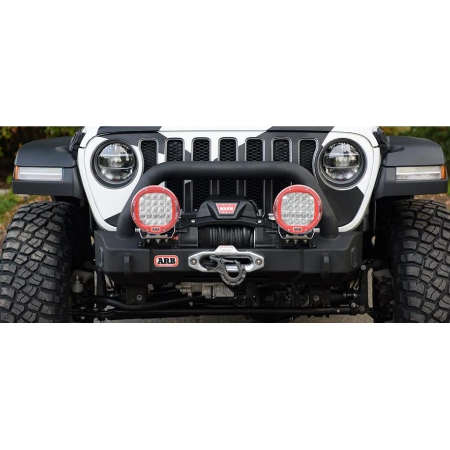 ARB STUBBY BUMPERInspired by the classic ARB JK Stubby Bar, the newly developed ARB JL Stubby Bar is designed for the offroader who is after a winch platform whilst maintaining maximum clearance for larger diameter tires. Generally, vehicles that run larger than 35 inch tires may foul the tire on the wings of a traditional style ARB Deluxe bar. The ARB Stubby Bar eliminates this issue on the JL Jeep Wrangler as it is only as wide as the vehicle's grille panel.FEATURES: \tVehicle specific design to complement the Jeep Wrangler JL\tDurable steel construction for maximum protection\tManufactured from 4mm laser cut and folded steel sheet\tEqually suited to winch and non-winch applications\tTwin jack points in the bumper perfect for use with ARB JACK\tAntenna tabs for fitment of antennas or driving lights\tProvisions to accommodate a range ARB Driving Lights\t0.8ÔÇ? 350 grade steel recovery points\t3ÔÇ? x 2mm ERW center frame tube\tAll hardware zinc plated for corrosion resistance\tAll exterior surfaces are CMT pulse welded\tZinc primed followed by textured Integrit black powder coat finish\tBumper weight including fitting kit: Approx 75lbs\tBumper dimensions: 20in H x 44in W