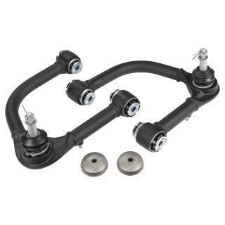 Upper Control ArmsAvailable for a range of popular 4WDs to ensure correct alignment of the front suspension and cater for the geometry change when an IFS vehicle is fitted and lifted with a suspension kit, Old Man Emu Front Upper Control arms have been engineered for use with Old Man Emu Suspension & GVM upgrades and include a forged ball joint housing, free pivoting grease and maintenance-free GIIRO bushings.When an Independent Front Suspension (IFS) vehicle is fitted with a suspension lift, the caster and camber can be pushed outside the factory specifications. IFS vehicles generally have a few degrees of adjustment in their camber and caster from the factory. Adding Old Man Emu upper control arms brings the alignment cams back into an acceptable range for both caster and camber.  Features:\tForged Ball Joint Housing\tForged Eyelets\tHeavy Duty greaseable Ball Joint\tOME Ball joint protective cap\tGIIRO bushings, free pivoting, grease free and maintenance free\tIncreased camber and caster for 2in lift\tMount provision for OE ABS wires\tARB's Intergrit powder coat finish\tBoxed in pairs with foam inserts\tFitting instructions included\tOME Branded outer sleeve\tTested and passed to meet VSB14 requirementsPlease note, after fitment of Old Man Emu Upper Control Arms, a wheel alignment is required.If the vehicle is fitted with aftermarket tyres/wheels, guard clearance should be checked. Additional caster maybe required if the tyres/wheels do not clear. Wheel alignment information is included in the fitting instructions.The OME Upper Control Arm will provide an increase between +2.5 and +3.5 degrees of caster and up to 1.5 degrees of negative camber increase (figures based off an approximate 50mm or 2in lift)