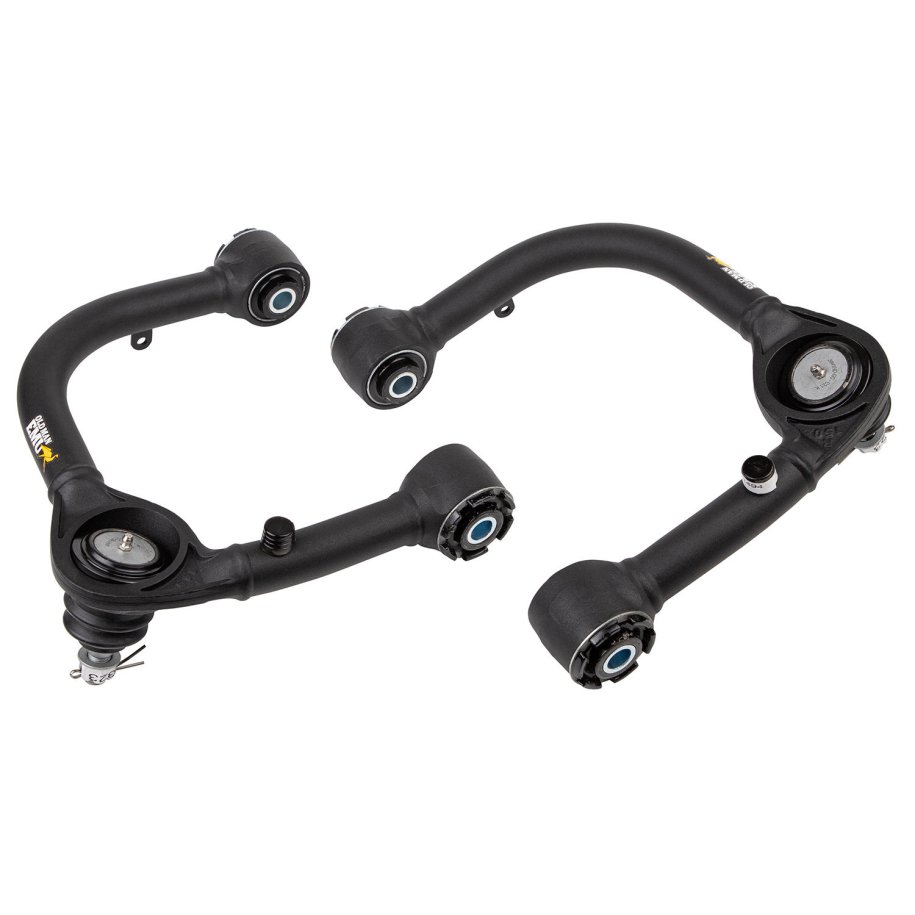 Upper Control ArmsAvailable for a range of popular 4WDs to ensure correct alignment of the front suspension and cater for the geometry change when an IFS vehicle is fitted and lifted with a suspension kit, Old Man Emu Front Upper Control arms have been engineered for use with Old Man Emu Suspension & GVM upgrades and include a forged ball joint housing, free pivoting grease and maintenance-free GIIRO bushings.When an Independent Front Suspension (IFS) vehicle is fitted with a suspension lift, the caster and camber can be pushed outside the factory specifications. IFS vehicles generally have a few degrees of adjustment in their camber and caster from the factory.